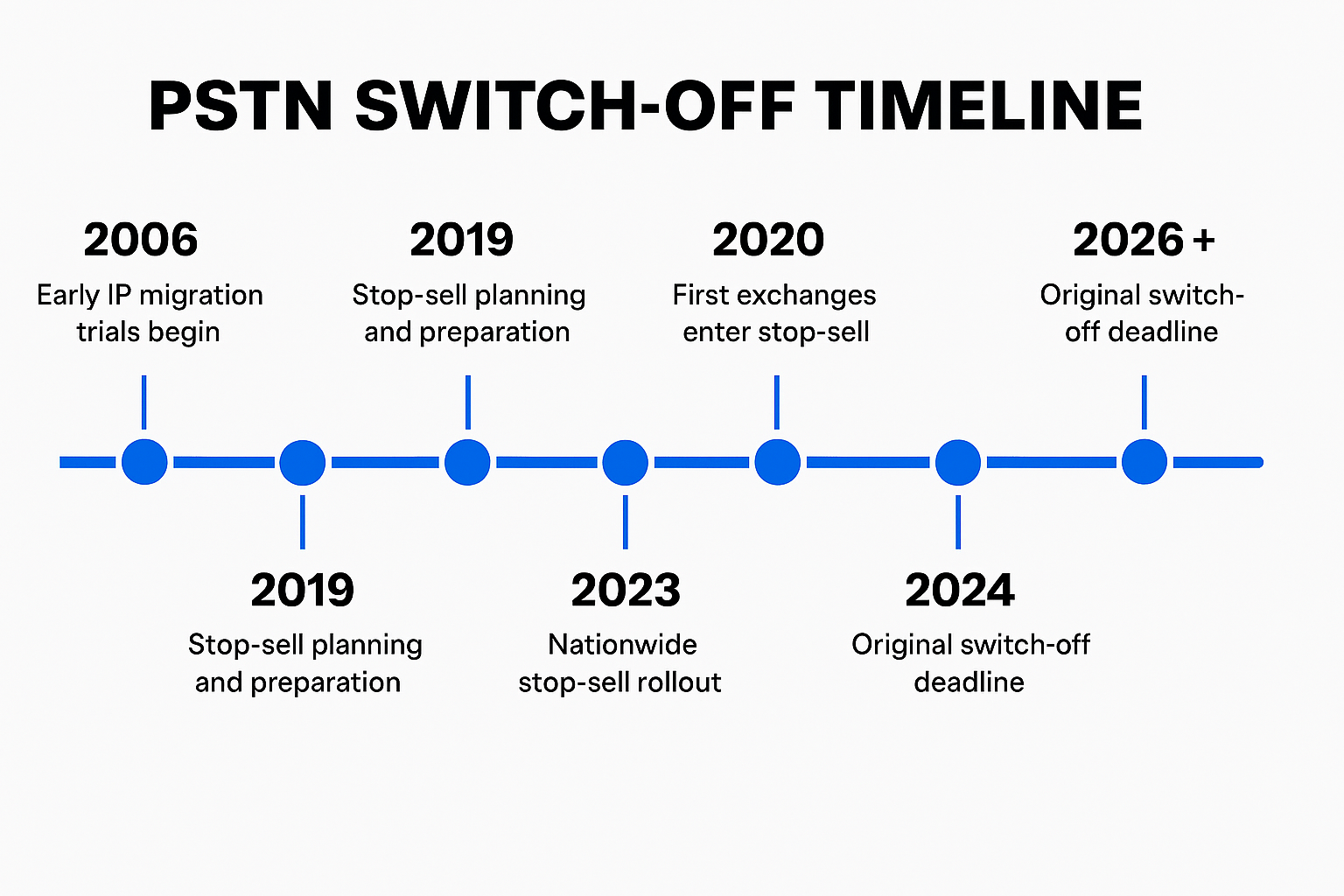 The UK’s move away from the old copper‑based Public Switched Telephone Network (PSTN) has been a long time coming — in fact, the journey started all the way back in 2006, when the first early trials and migrations began. Since then, the plan has evolved, expanded, and, more recently, been delayed.